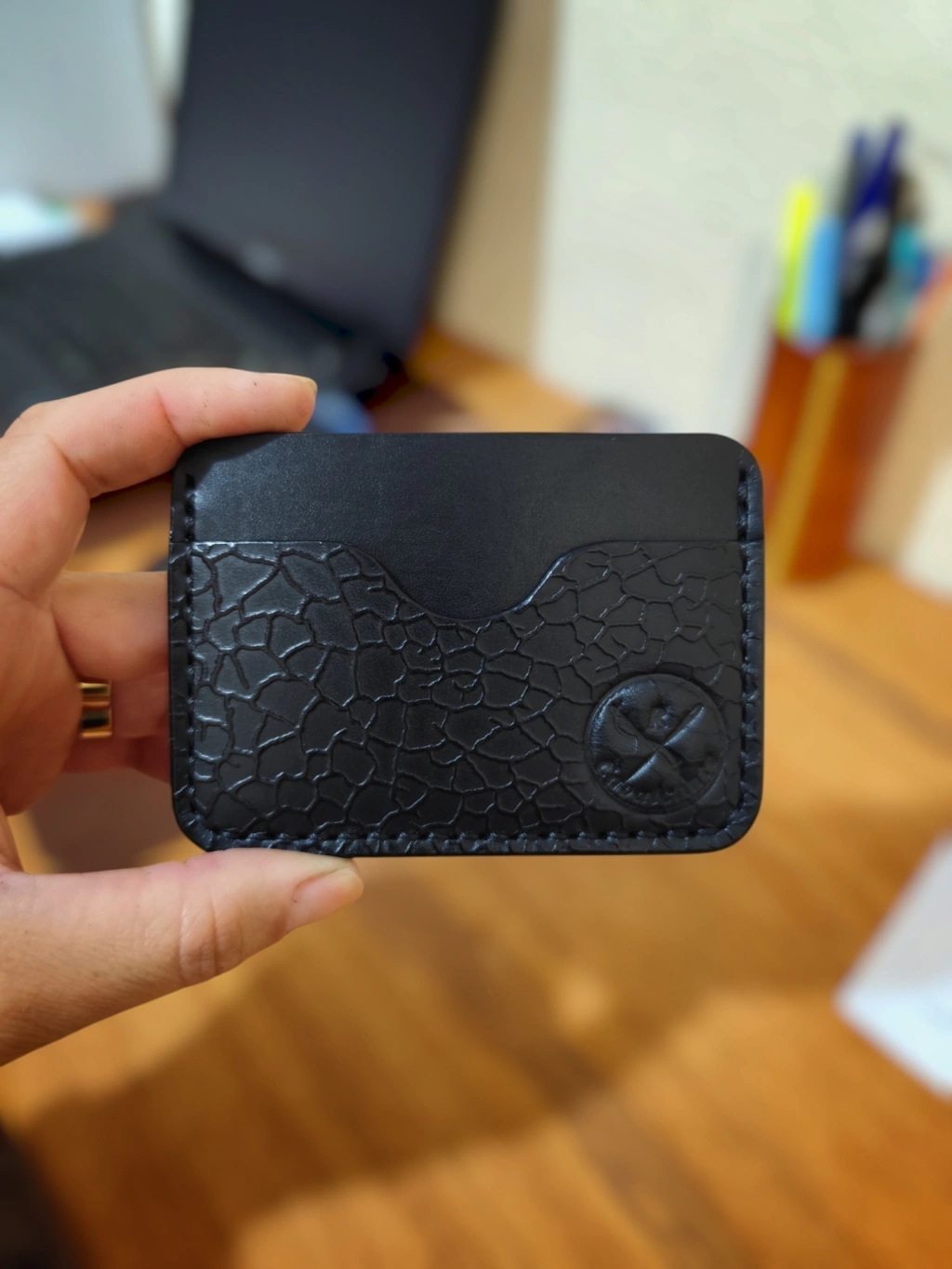 Todos os nossos produtos são feitos artesanalmente com couro legítimo, garantindo qualidade e exclusividade. Por se tratar de um material natural, pequenas variações de cor, textura ou marcações podem ocorrer, sendo essas características do couro e não consideradas defeitos.